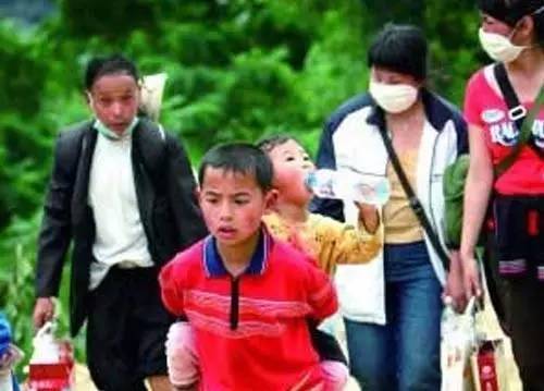5、11歲的張吉萬背著3歲的妹妹走了10多個(gè)鐘頭逃出地震災(zāi)區(qū)。
